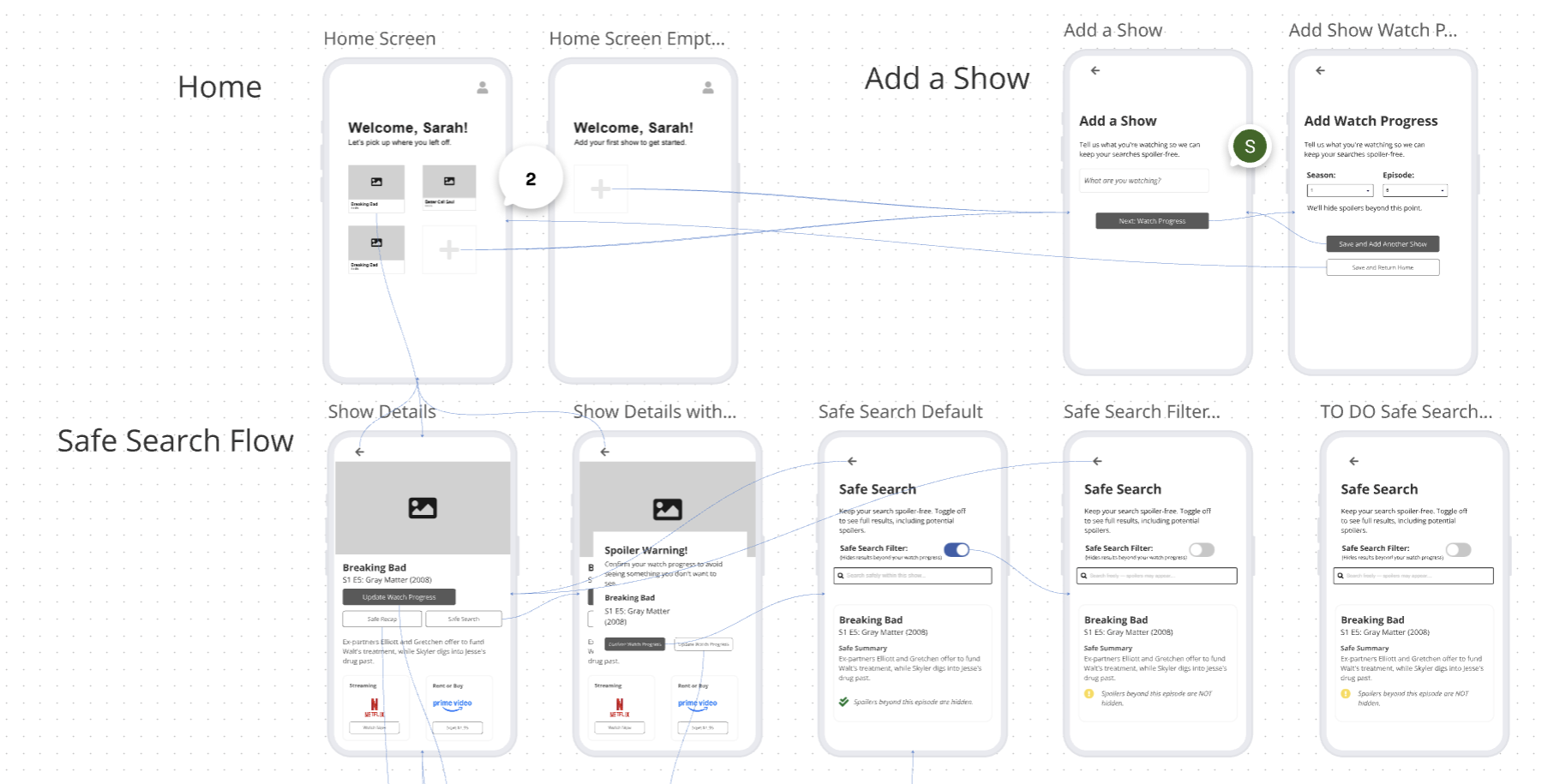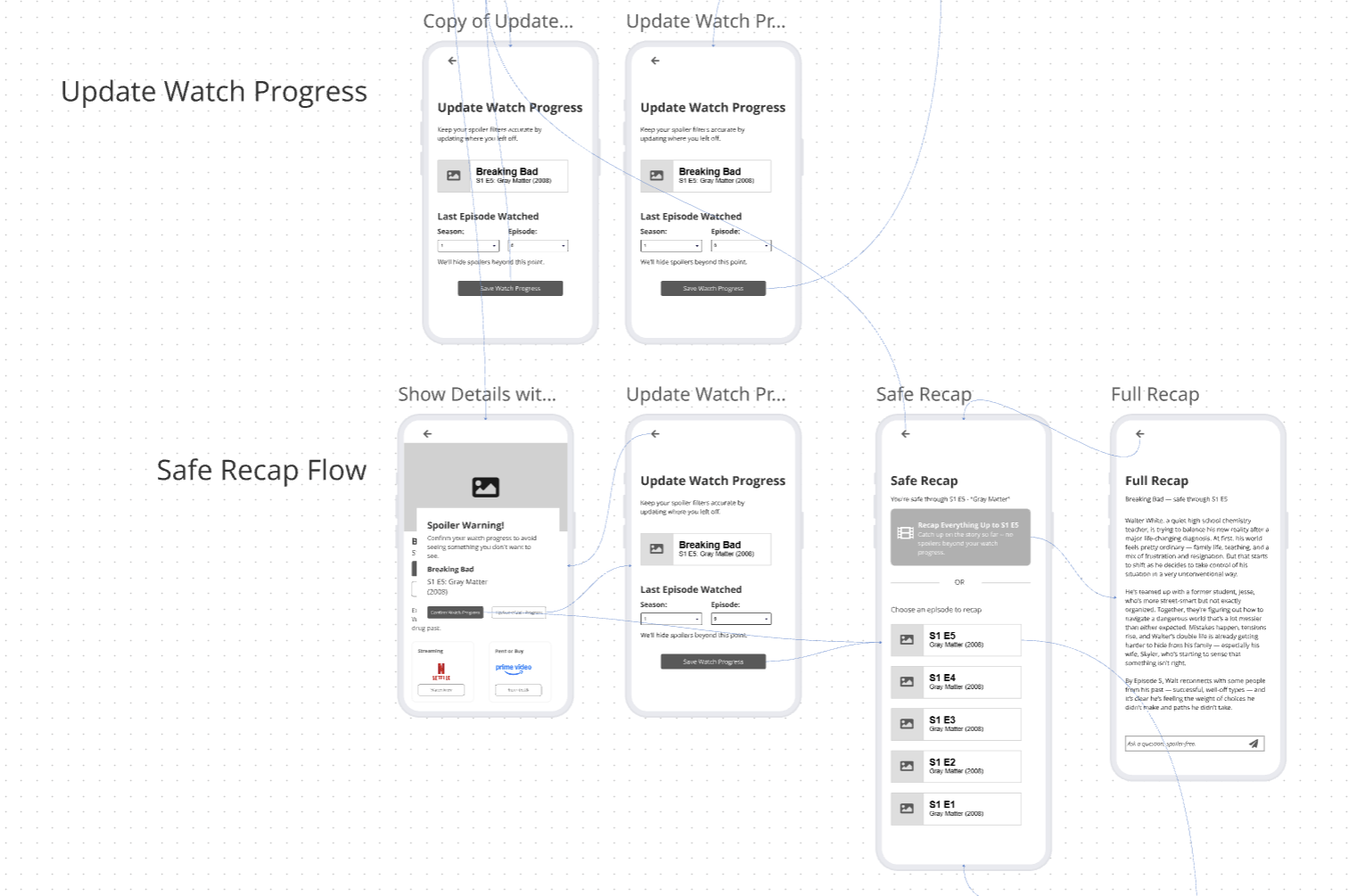 - Develop initial interaction flows showing how users might navigate spoiler-safe content.
