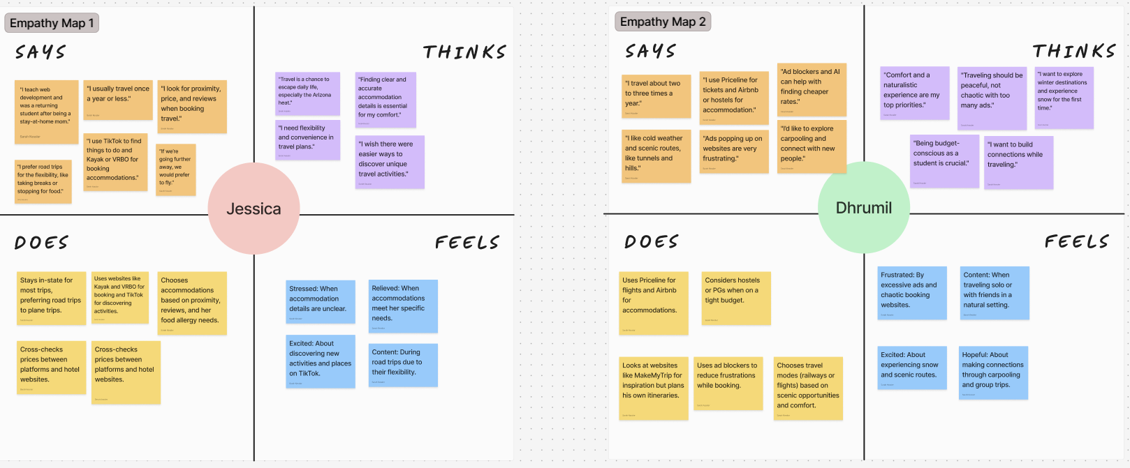 - Conducted empathy mapping to capture travel motivations, goals, and frustrations.