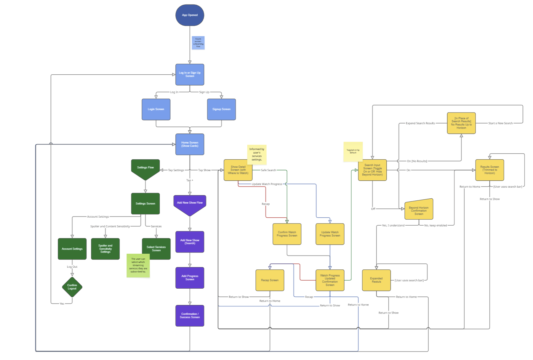- Created a sitemap and flow diagram in Miro for onboarding, search, and safe-browsing modes.