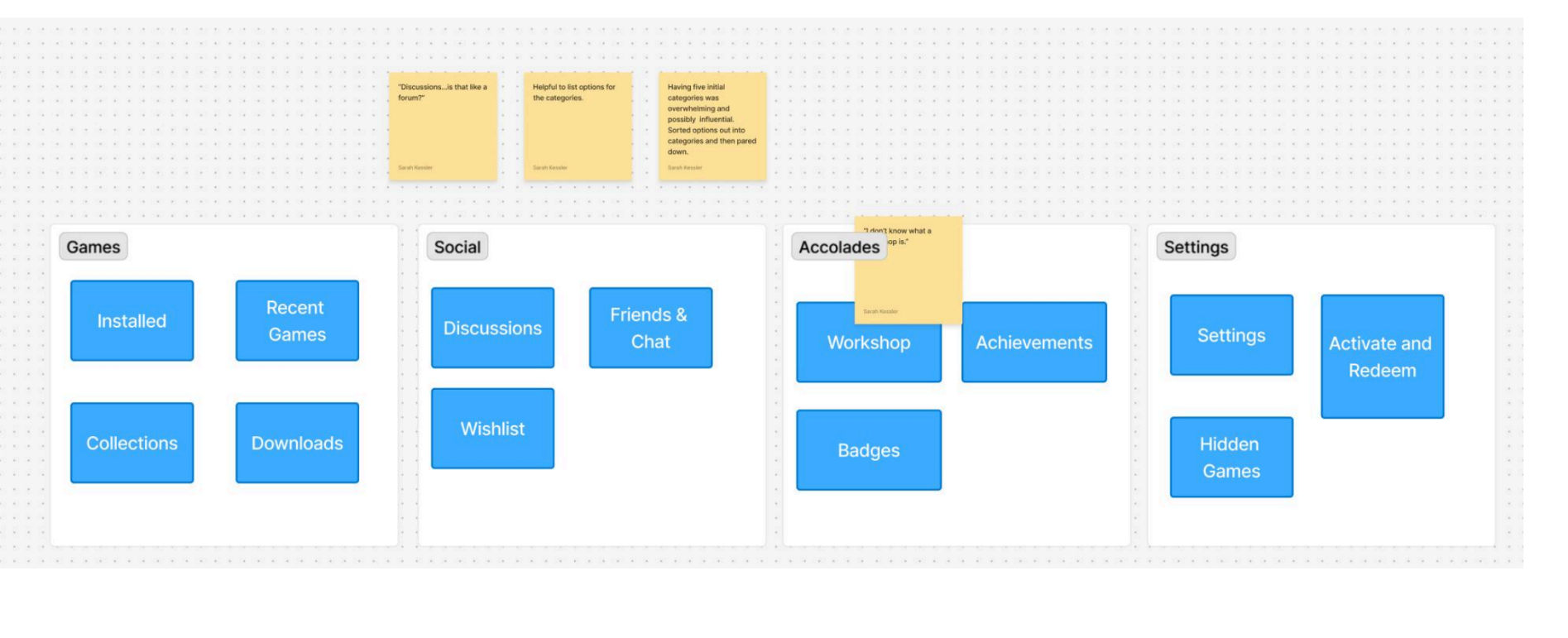 I used both heuristic evaluation and open card sorting to analyze the Steam desktop app’s navigation and interface. These methods helped identify how users interpret menu structure, where confusion occurs, and how the system aligns with established usability principles.